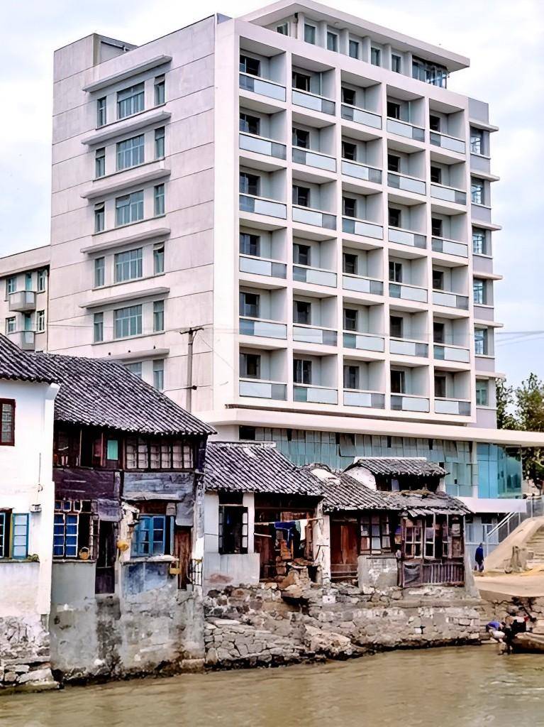 △ 水邊的樓房與樓房形成了鮮明的對比,仔細數了一下有八層高,成排的瓦房在它面前,就顯得格外低矮了