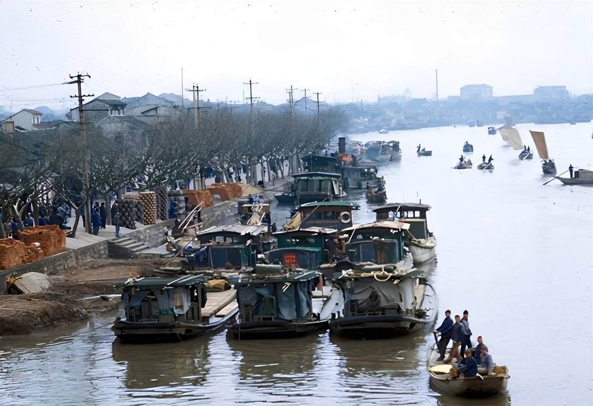 70年代,運河里忙碌的船運送貨物