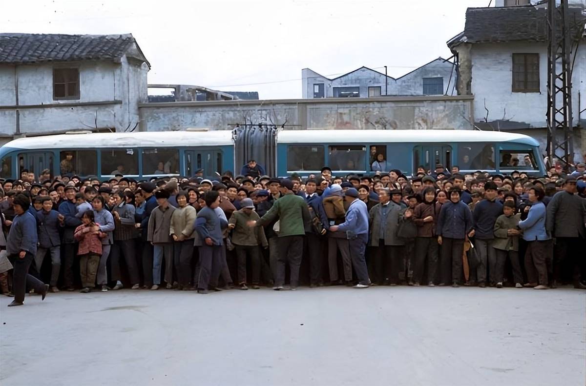 圍觀的人群1972年,美國訪問團到無錫新風飯店(即聚豐園)就餐,引來了很多人圍觀,雙節的辮子車似乎都像是停靠在路邊一樣,每個人探著頭想一睹為快,在如今看到一個國外人都比較好奇,更別說70年代了,更是一個稀奇事了