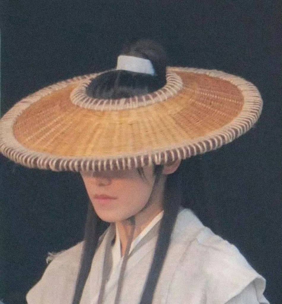 照片中的他,身穿白色古裝,帶著斗笠半遮面,有種神秘朦朧的帥氣。