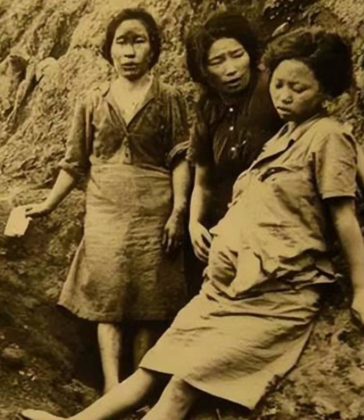 這是在1944年松山戰役期間,樸永心被中國守軍解救出來,當時她已經懷上了日軍的野種,右邊這個婦女,就是樸永心。戰后,她被遣送回韓國。