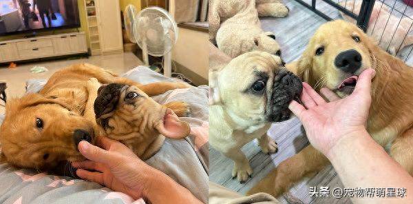 一位撿屎官養了只法斗和一只金毛,兩只狗狗感情很好,平時就在家一起玩耍,一起拆家,還會一起撒嬌~