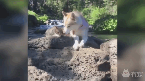 在国外有一只小猫咪,它以为自己是只狗,你看,连哈气的样子都和狗狗一模一样。那么问题来了,为什么它会以为自己是只狗呢?