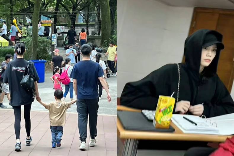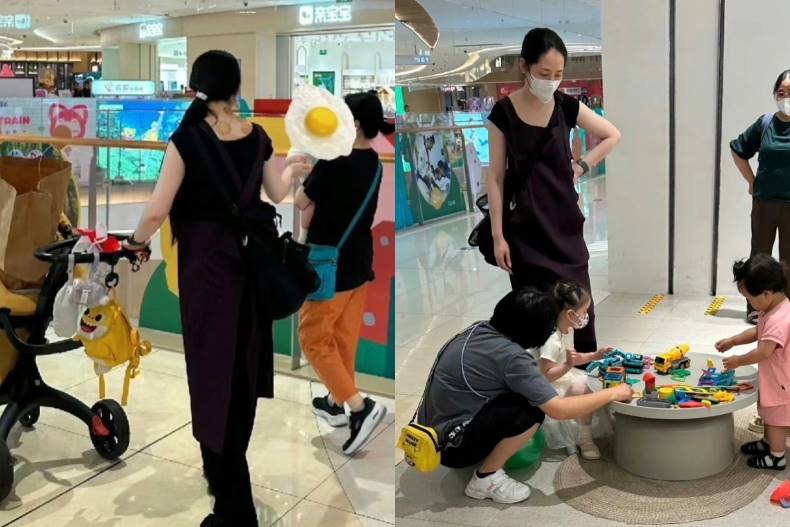 除此之外也有网友在杭州百货公司巧遇郭碧婷,带着一双儿女以及三位保母,当日郭碧婷走全黑路线,身穿「黑色长版连衣裙+黑色长裤」,斜揹一咖黑色妈妈包,而郭碧婷转身离开时,被网友拍下的背影照中,後颈位置还有大片未消的拔罐红印,遭许多网友批评「仙气没了」、「邋遢」、「面色憔悴」等等,不过也有人大讚「接地气」、「看得出来她有用心带娃」。