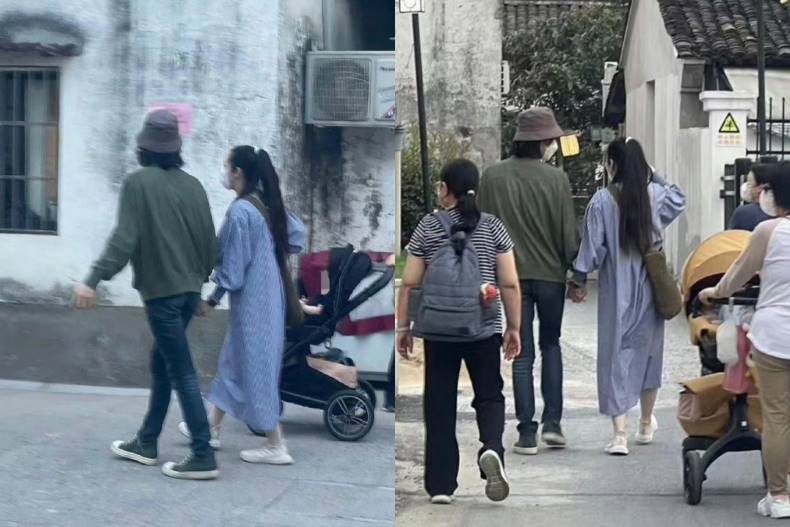 向佐、郭碧婷久违同框了,近日两人带着孩子一同现身杭州街头,在粉丝拍下的照片中,郭碧婷身穿「蓝色条纹长版衬衫洋装」,脚踩休閒运动鞋,身上揹着大型斜挎包,整体打扮被网友评价「孕味十足」,而一旁的向佐则是「渔夫帽+牛仔裤」,两人穿着上都非常低调,全程十指进口漫步街头,小俩口看上去相当幸福。