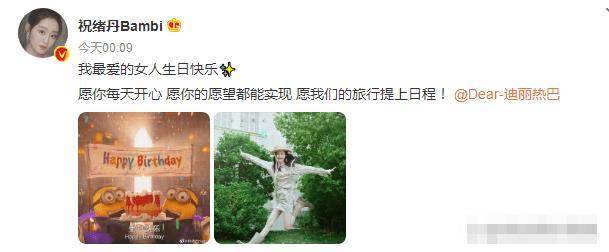 神仙友誼!祝緒丹為迪麗熱巴慶生,稱迪麗熱巴是她最愛的女人