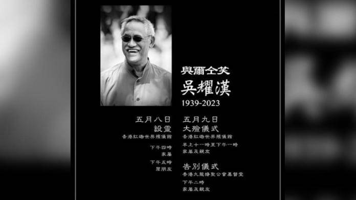 根據《ETtoday》報導,吳耀漢今(8)日下午5時將在紅磡世界殯儀館舉行告別式,明(9)日天上午11時進行出殯,之後將遺體移送九龍塘以基督教儀式做最後道別,遺體火化後再擇日舉行海葬。
